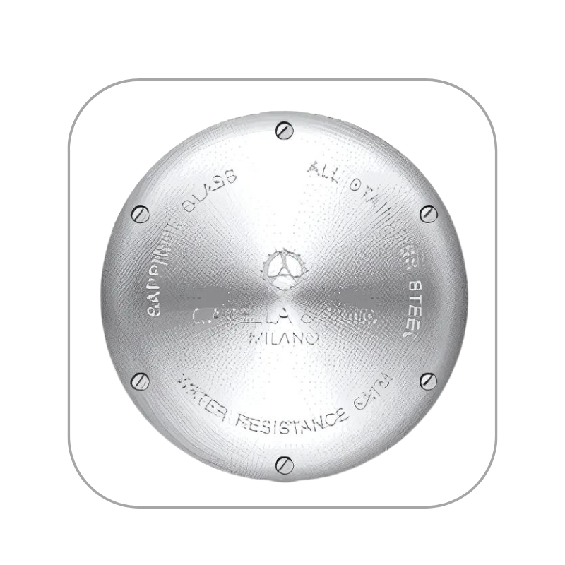 Il fondello dell’orologio è caratterizzato dalla chiusura a sei viti, che ne conferiscono un tocco di eleganza e ricercatezza.