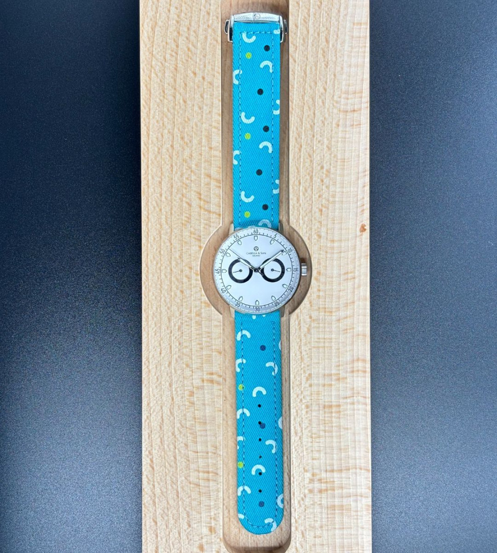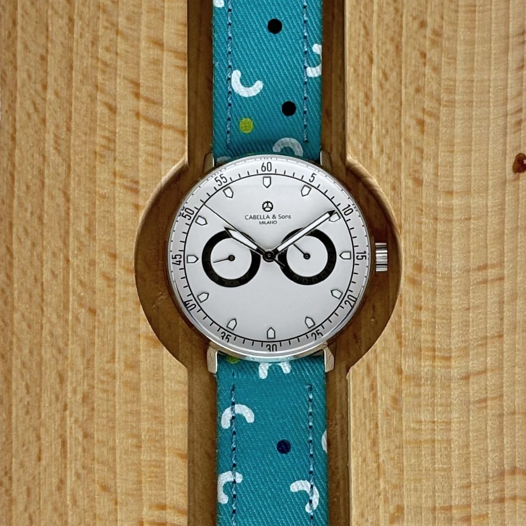 The Joy is a cotton strap in aquamarine, a clear blue tending towards green.